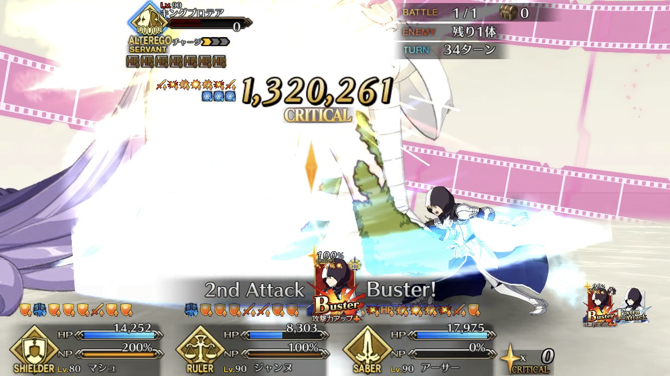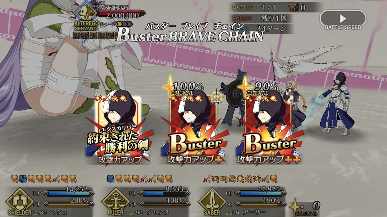 NP足りなくて令呪1角切ったが「令呪をもって命ず! プロテアを倒せ! セイバー!!」ってやったみたいで燃えたぜ。